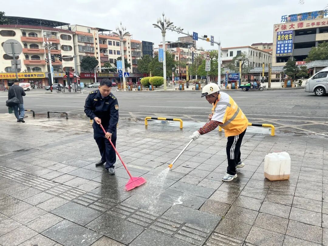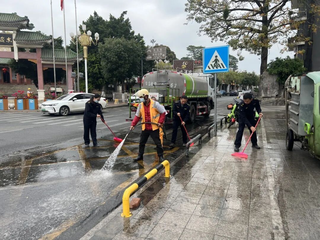 除了主会场之外,茶山城管还组织工作人员和环卫工人到乐融荟、东岳广场等商业街区、公园广场等地开展专门的地面冲洗,以干净整洁的城市环境迎新年。